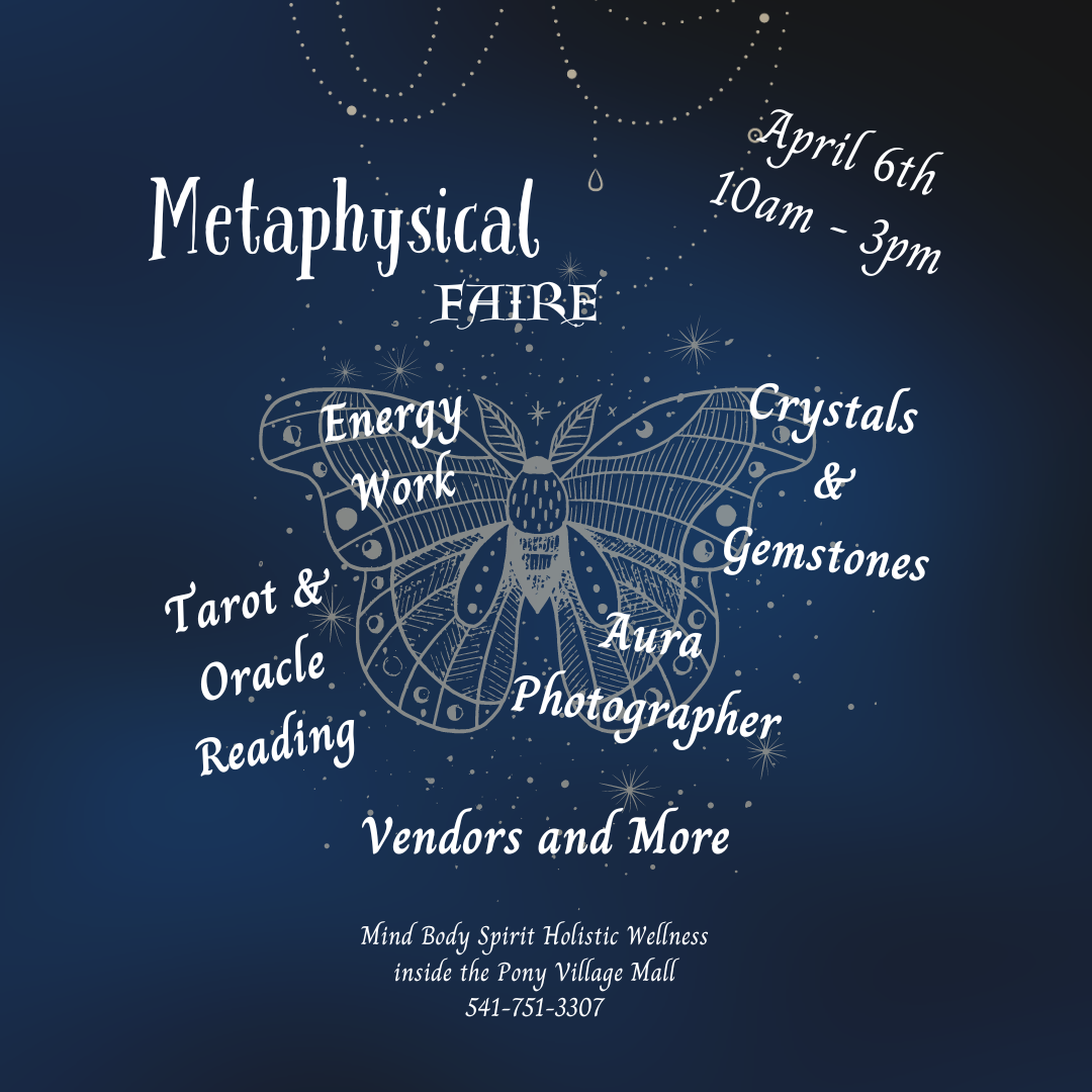 Our April Metaphysical Faire will be our next large event. We will have tarot and oracle readers, energy workers, vendors and so much more. Check out more details here!